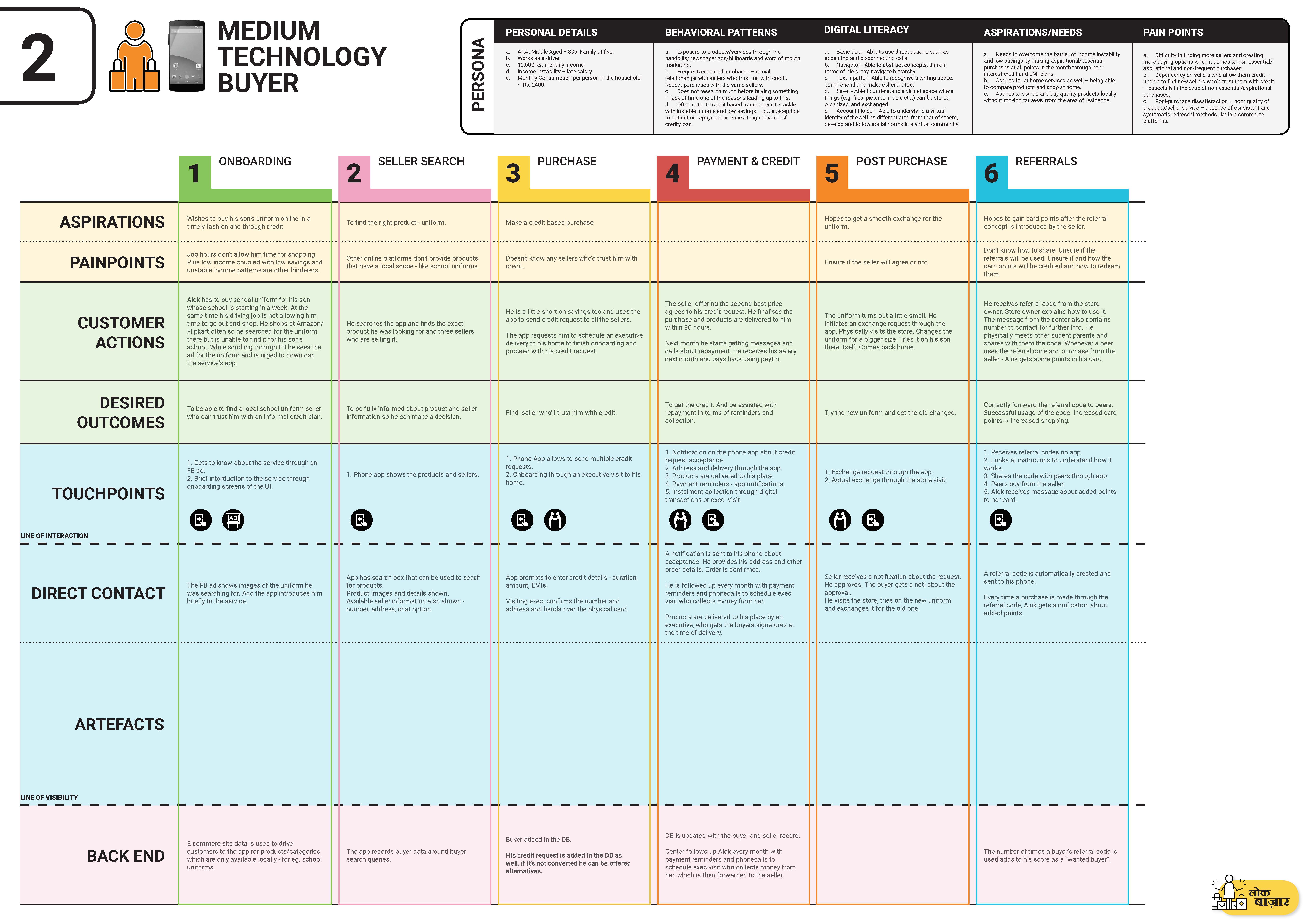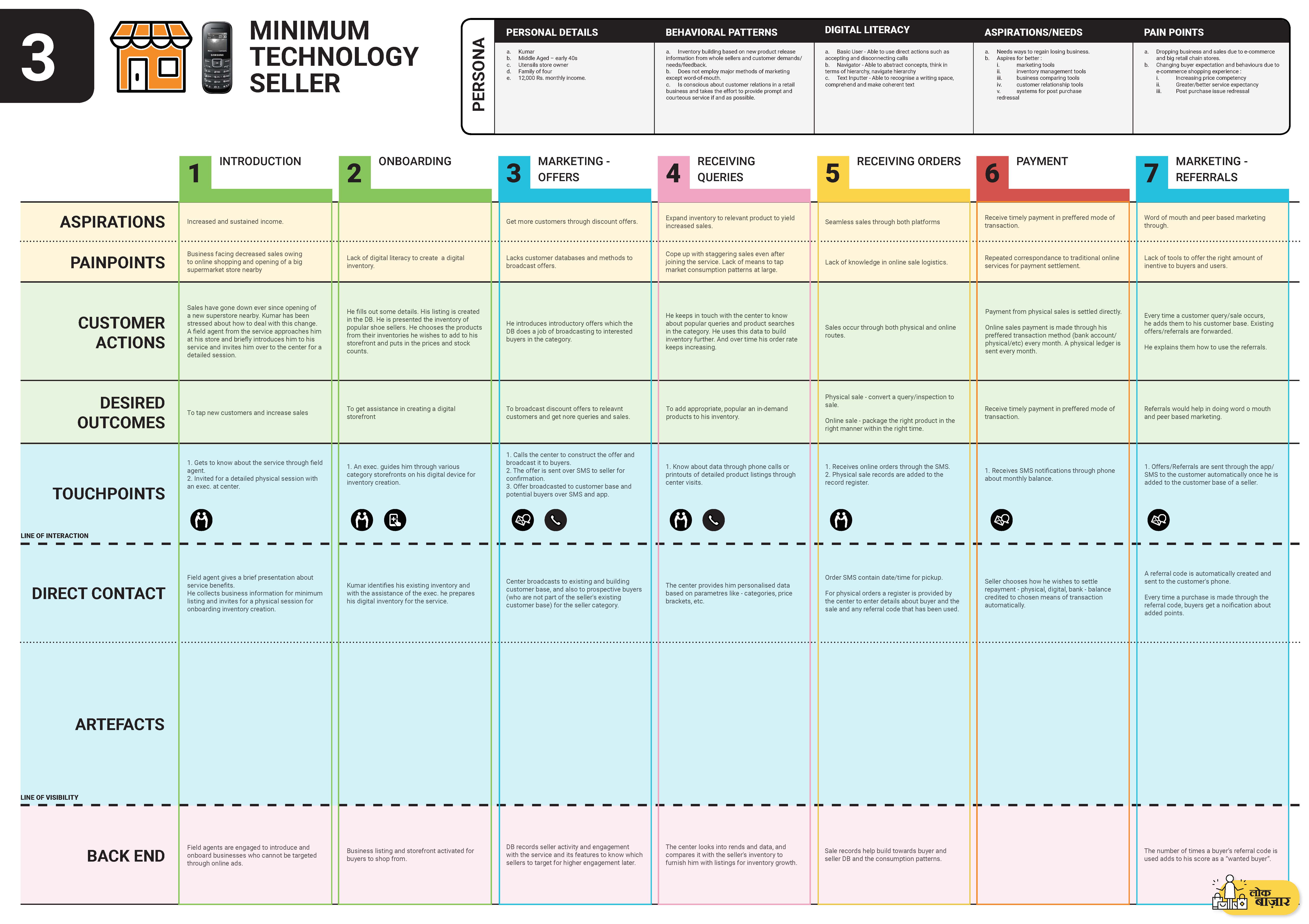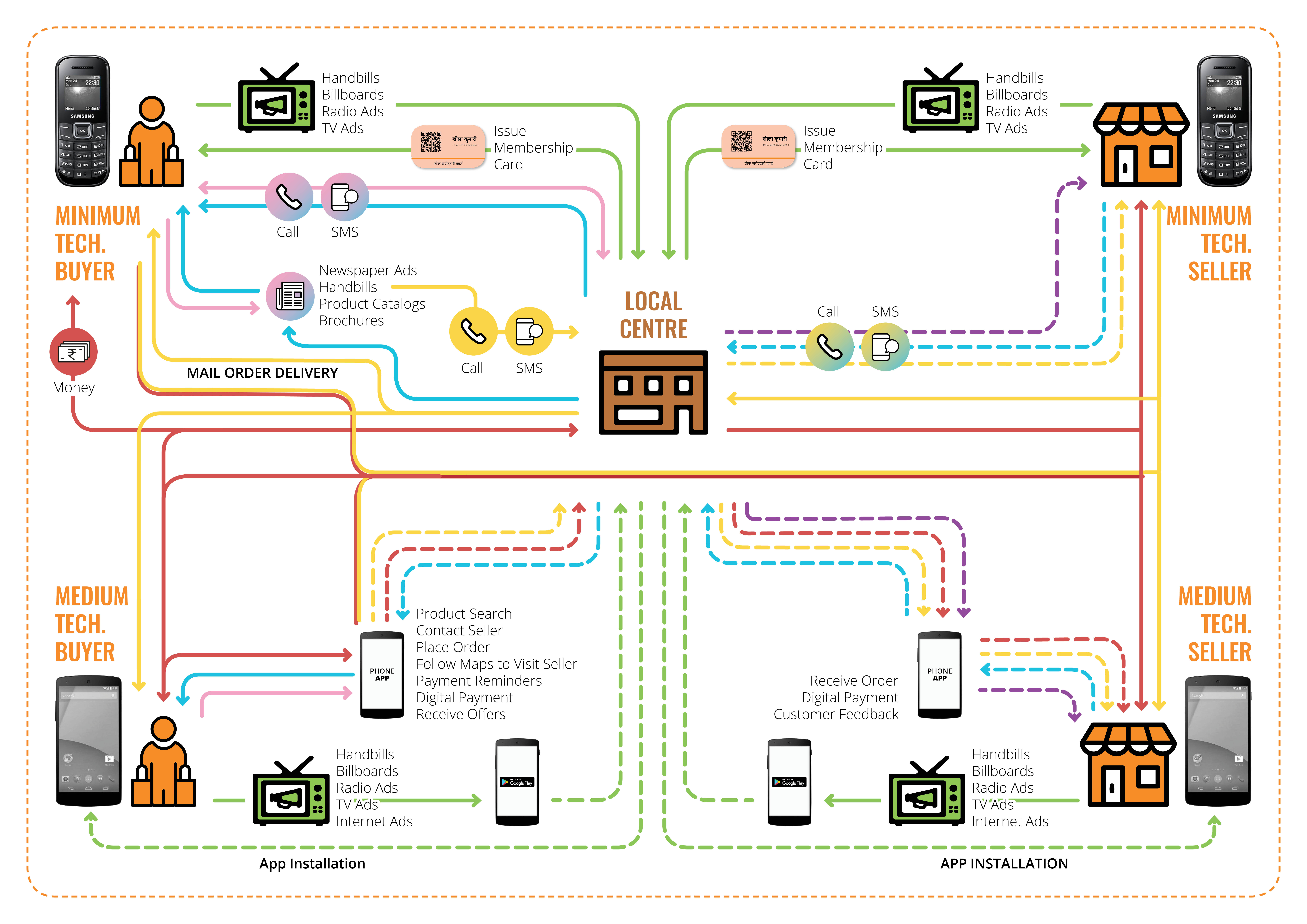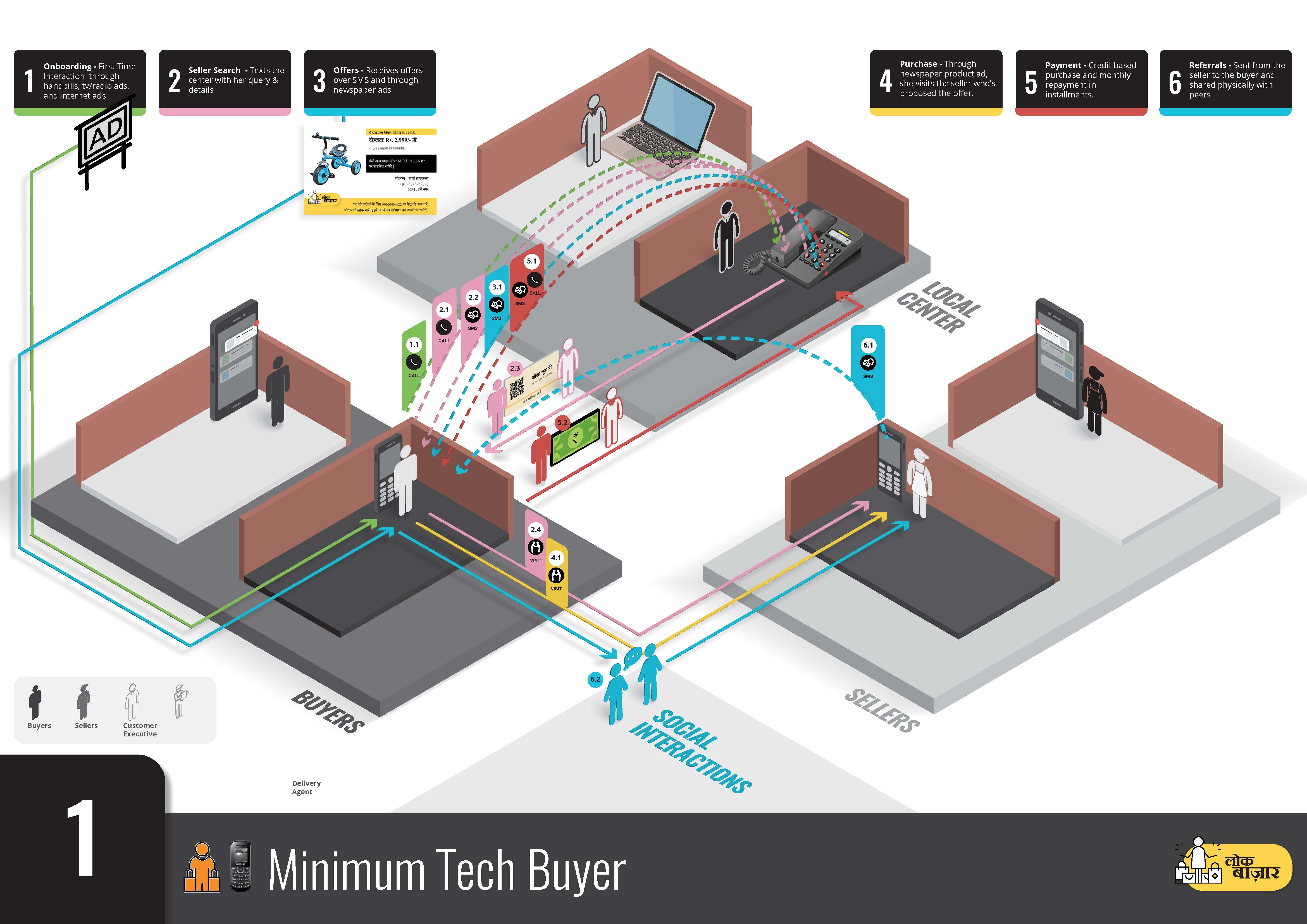 Feedback from buyers and sellers was incorporated to form the first draft of the concept. It was decided that both the previous concepts should be merged to come up with a holistic service that caters to users at both end of the technology spectrum.
