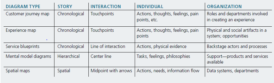 ‘Mapping Experiences : A Complete Guide to Creating Value through Journeys, Blueprints, and Diagrams’ by James Kabach was studied to understand existing popular techniques for mapping experiences, systems and services.