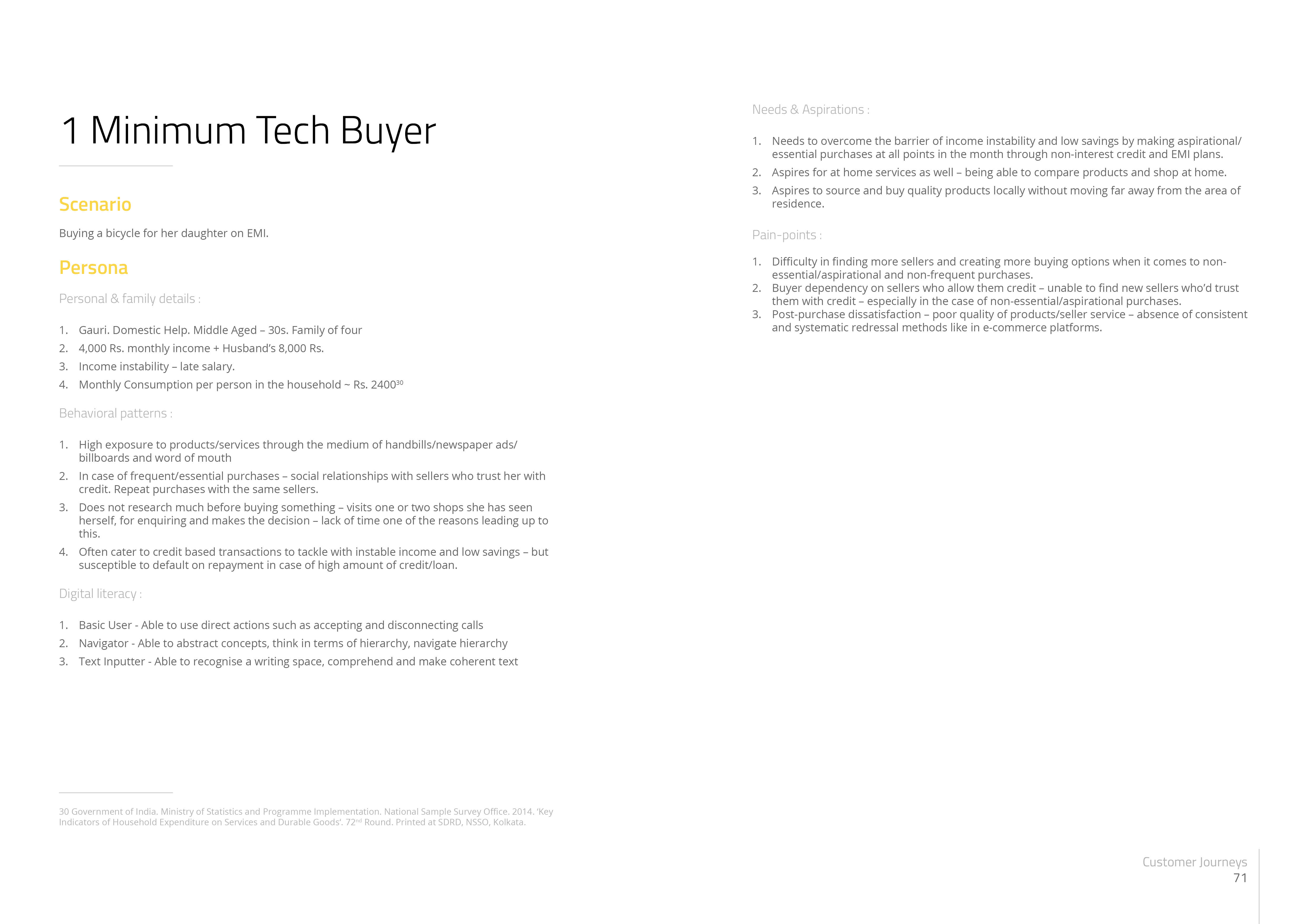 - The market purchase life cycle was divided into various steps from product research, purchase, post-purchase issue redresaal and follow up from sellers.